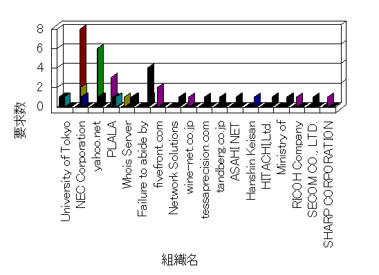 組織ユーザーにインターネット接続を提供する、商用または非営利団体、学術・行政機関などの、インターネット ドメイン で識別される団体や組織です。Microsoft Site Server Analysis は同じ組織に登録されたすべてのドメインを 1 つの組織としてグループ化します。ドメインがデータベースで使用できない場合は、1 つのインターネット ドメインが 1 つの組織を識別するのに使用されます。